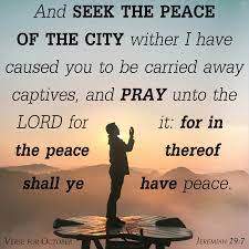 “And seek the peace of the city where I have caused you to be carried away captive, and pray to the Lord for it; for in its peace you will have peace.”